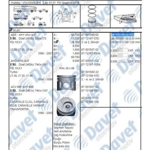 motor segmani 81-00mm std -5 silindir motorun hepsine uyumlu lt28- lt35 -lt46 -a