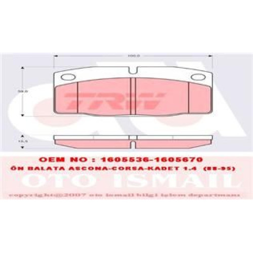 Etiketler: ÖN BALATA ASCONA 76/88 CORSA A 82.3.93 KADET 1.4 88-95 VECTRA A 88/11.95 OMEGA 8